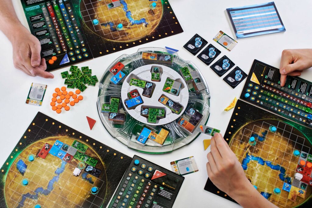 Chaque placement de tuile est important pour couvrir efficacement votre planète et aussi pour construire le moteur de votre planète.